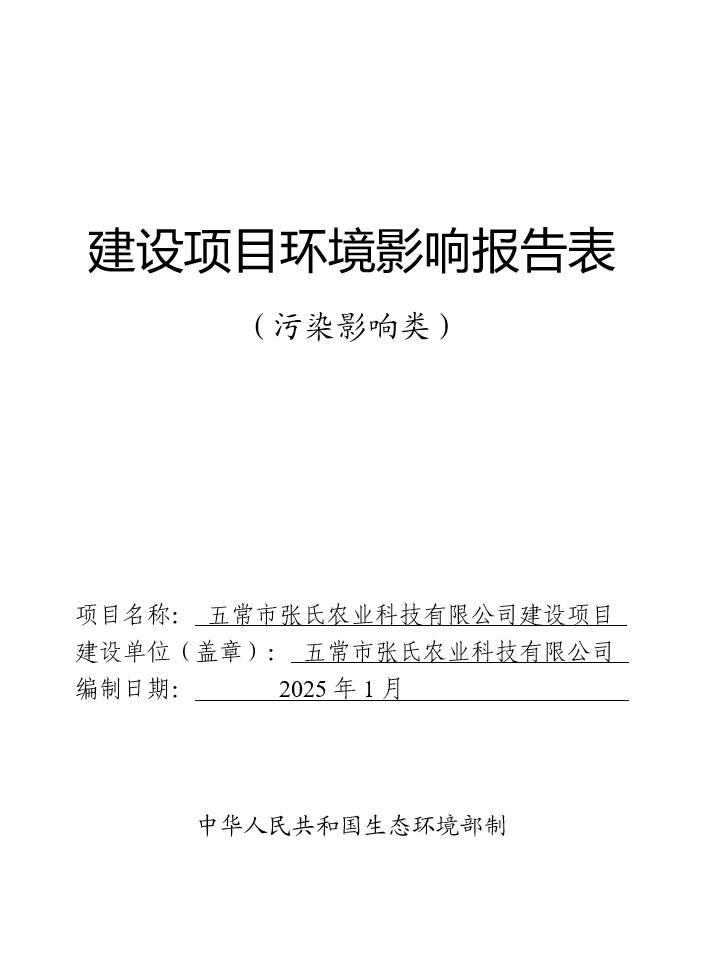 五常市張氏農(nóng)業(yè)科技有限公司建設項目環(huán)境影響報告表